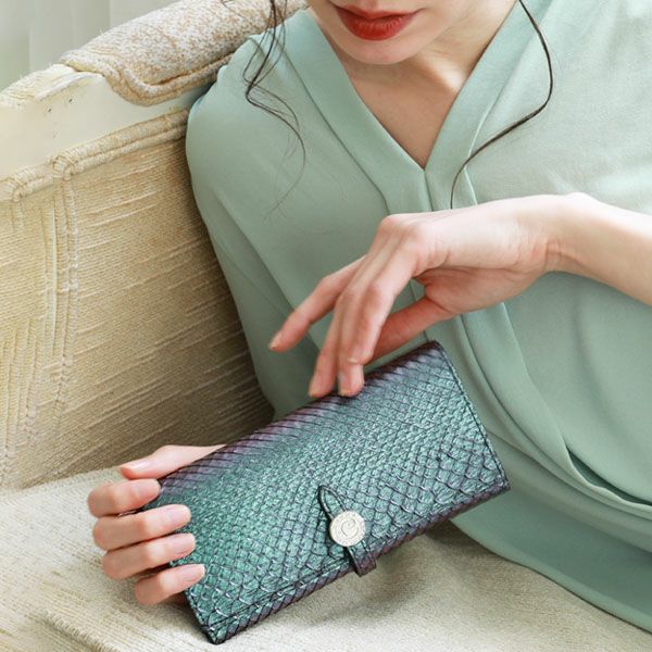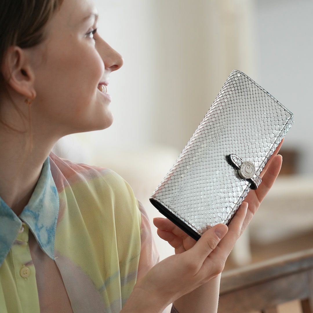 しっとりと贅沢なリアルパイソンのダイアリーウォレット |