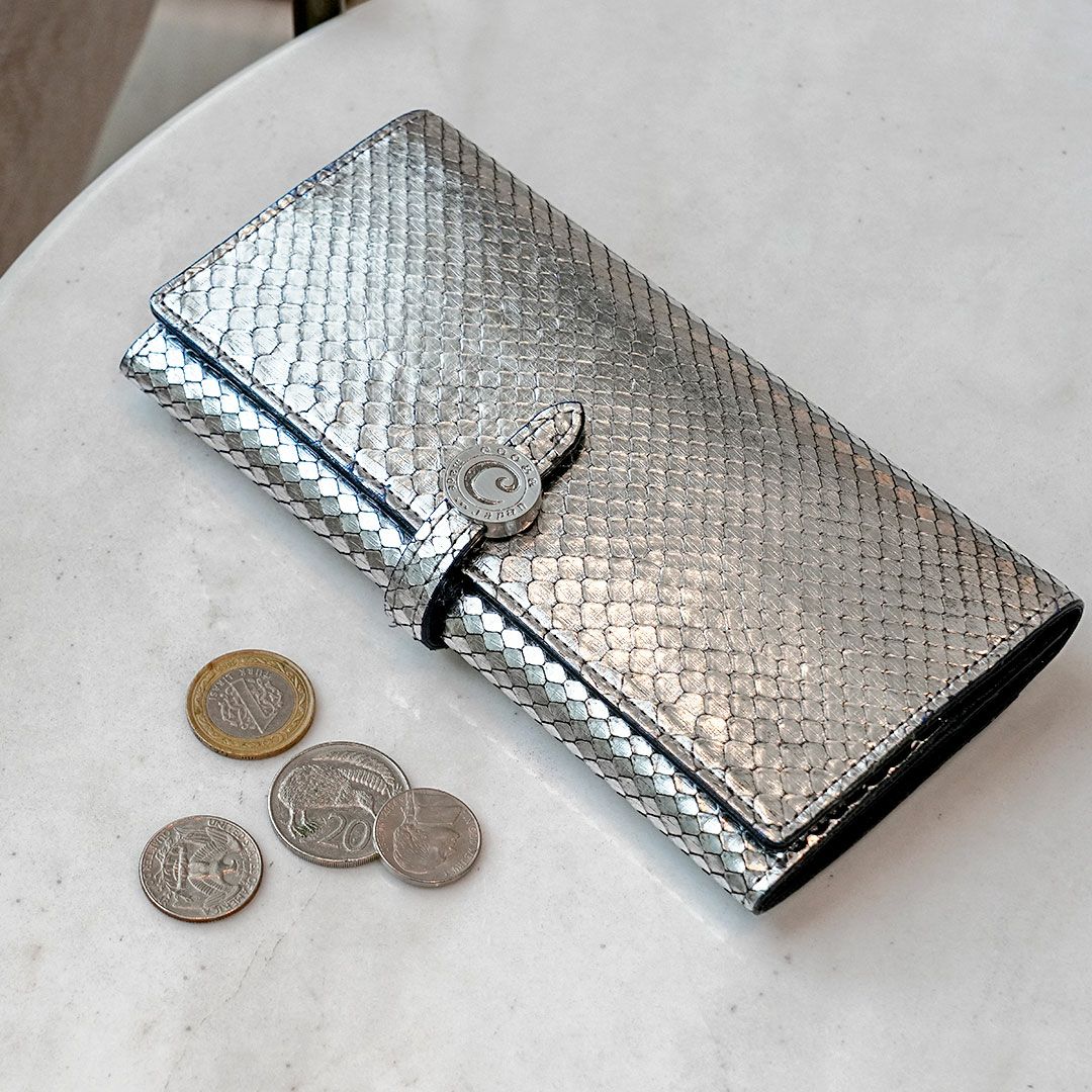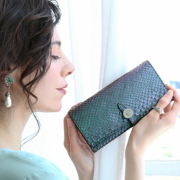 「永遠の幸せ」がテーマの二つ折りパイソン財布 |