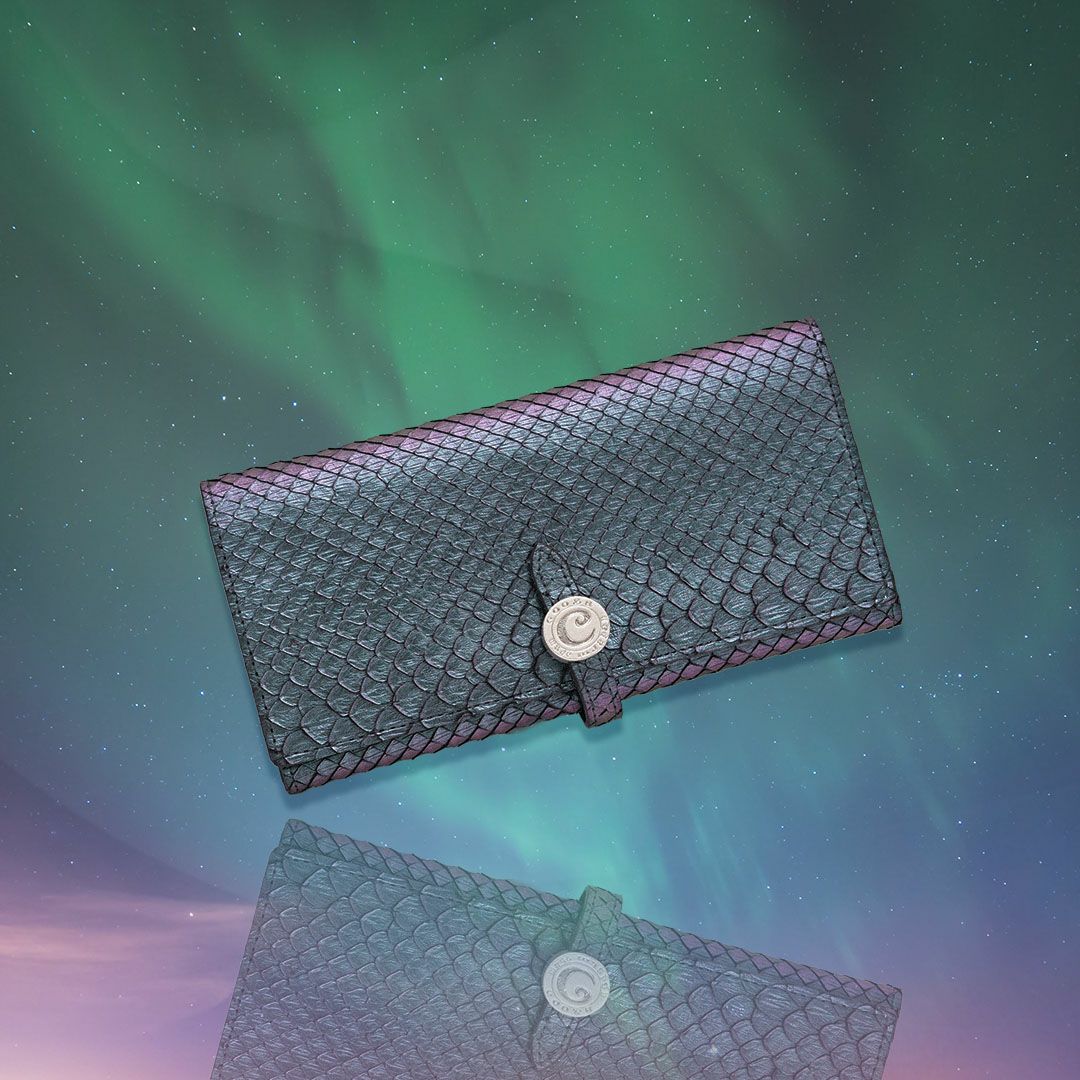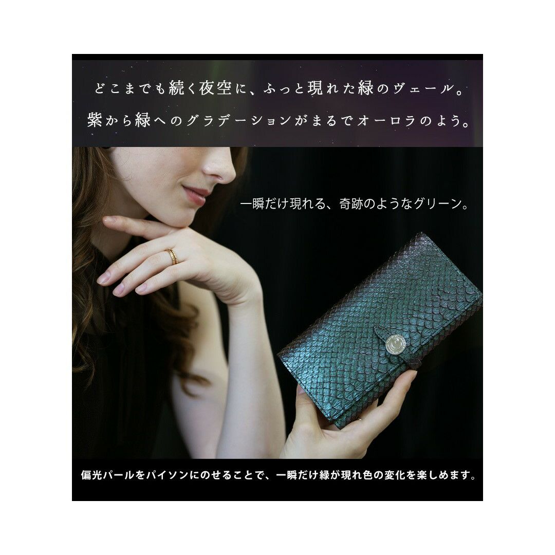 「願い叶うオーロラ」がテーマのパイソン長財布 |