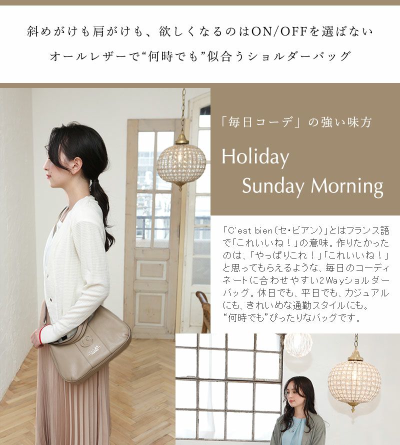 他の画像を見る 【cooga】「毎日コーデ」の強い味方2WayレザーショルダーバッグCestbien(セ・ビアン)本牛革 2Way 肩にかかる 斜めがけ オールレザー 500g以下の軽いバッグ 販売価格 ¥ 37,400 税込 お気に入りに登録する